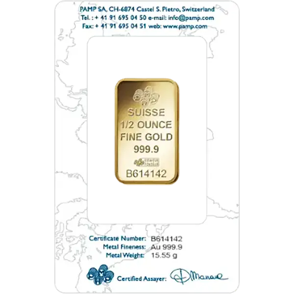 Introducing our ½ Ounce PAMP Rosa Gold Bars, a testament to luxury. Crafted with meticulous attention to detail, these gold bars are a symbol of purity and opulence. Each half-ounce gold bar is composed of the finest 24k gold, ensuring an exquisite shine and lasting value. Whether you’re a seasoned investor or a connoisseur of precious metals, our ½ Ounce PAMP Rosa Gold Bars offer a wise choice.