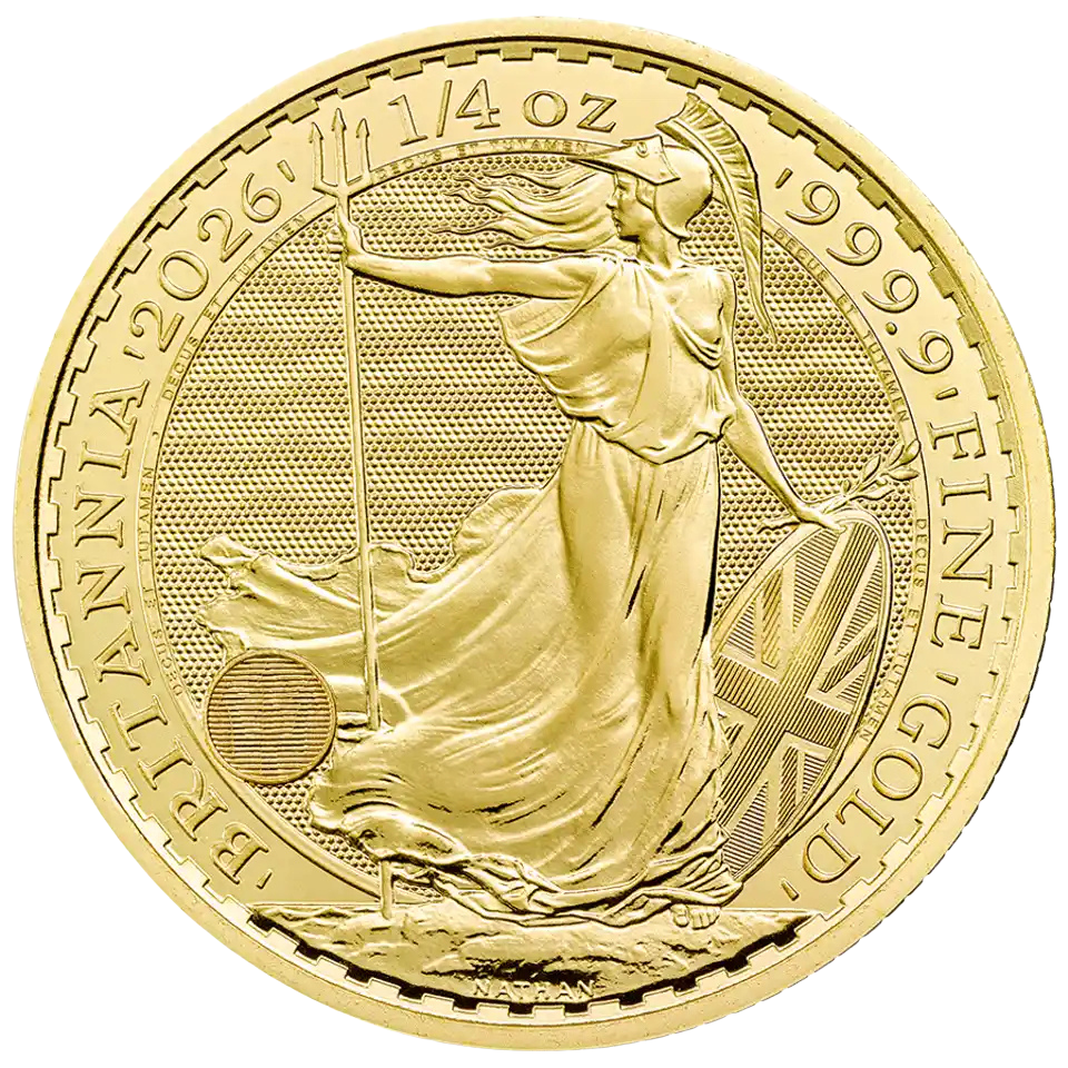 The illustrious Britannia Gold Coin is crafted from 24-carat gold, symbolising timeless elegance. Sought after by investors and institutions alike, the brand new Quarter-Ounce Britannia coin for 2026 features a crowned portrait of the newly-crowned monarch King Charles III.