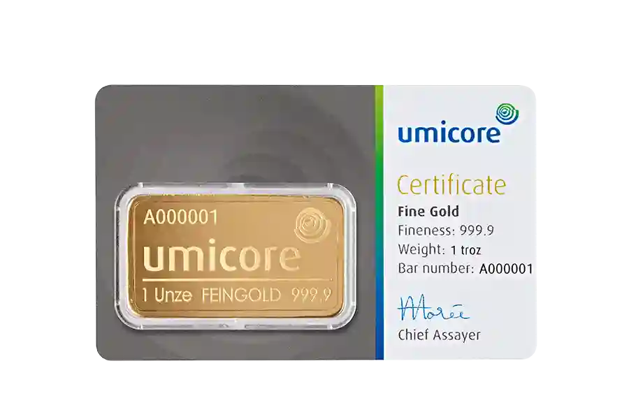 Our Belgian-made 1 ounce Umicore gold bars boast 24 Carats, 99.99% purity, and are LBMA approved, making them a great option for first-time investors and collectors.
