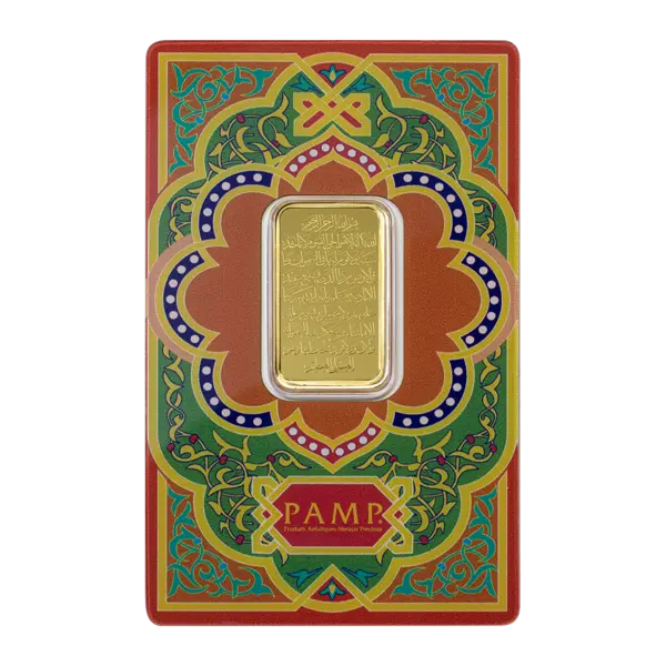 Introducing our exquisite 10 gram PAMP Ayatul Kursi Gold Bar. With LBMA (London Bullion Market Association) approval and 99.99% purity, these are fantastic products for collectors or investors.