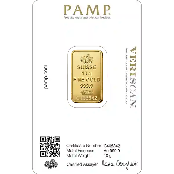 All our 10 gram PAMP Lady Fortuna gold bars are brand new, with a unique serial number so you can track the gold’s quality. This product comes in a credit card-sized package.