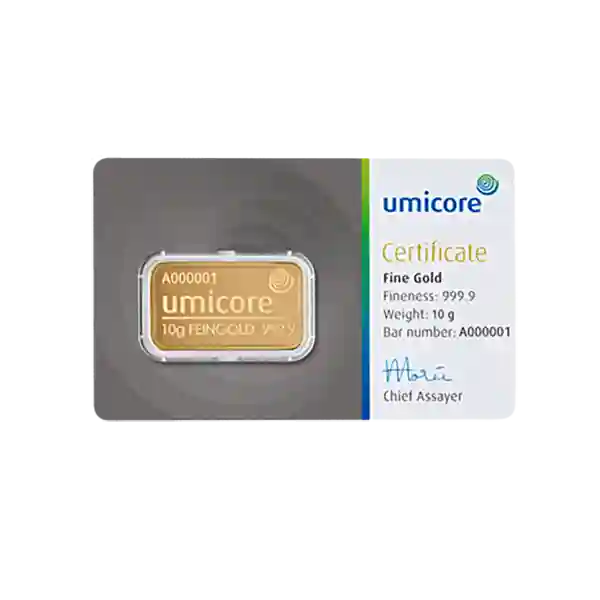 Our Belgian-made 10 gram Umicore gold bars boast 24 Carats, 99.99% purity, and are LBMA approved, making them a great option for first-time investors and collectors.