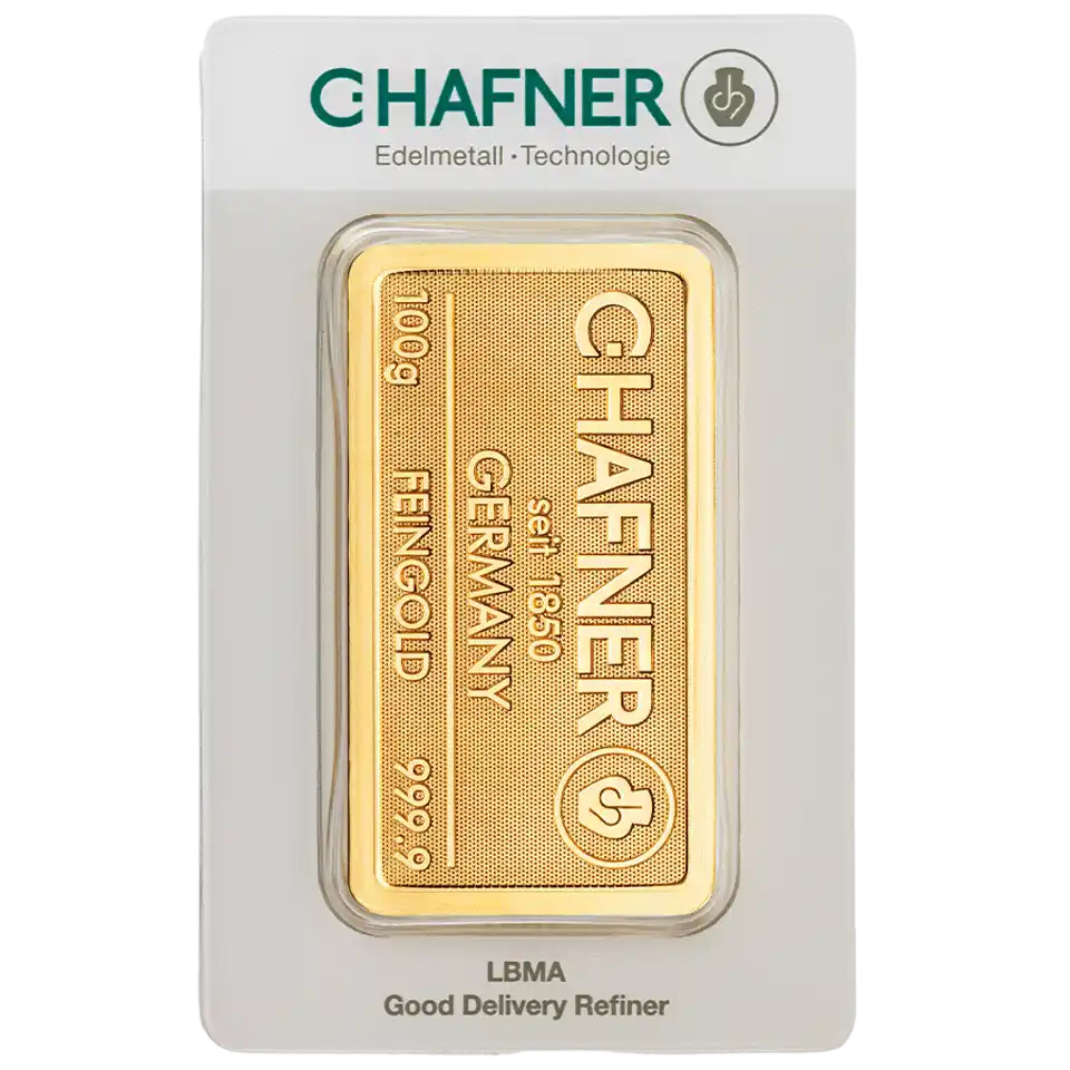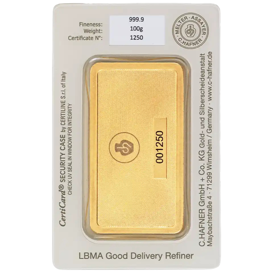 Our German-made 100 gram C.Hafner gold bars boast 24 Carats, 99.99% purity, and are LBMA approved, making them a great option for first-time investors and collectors.