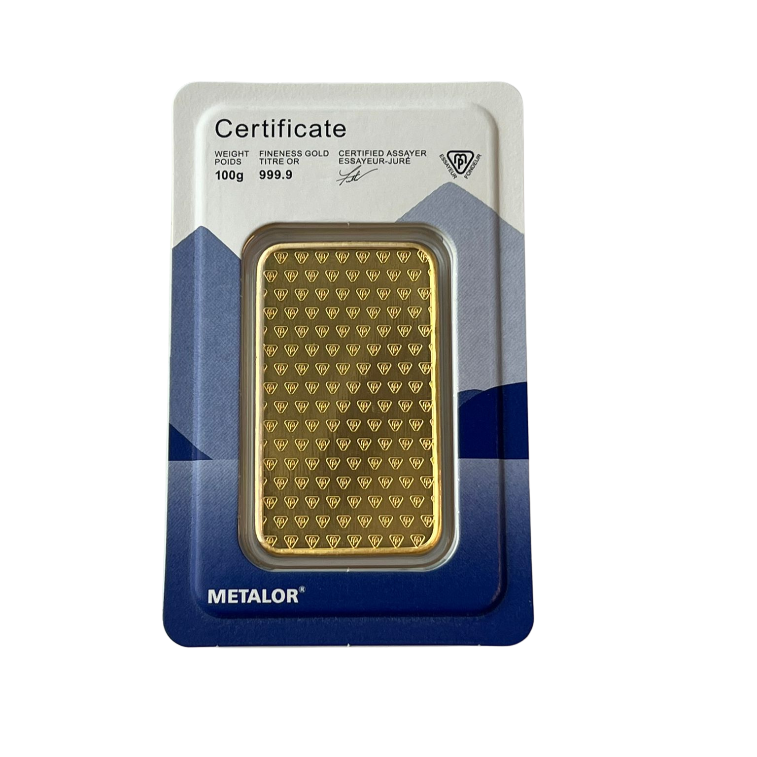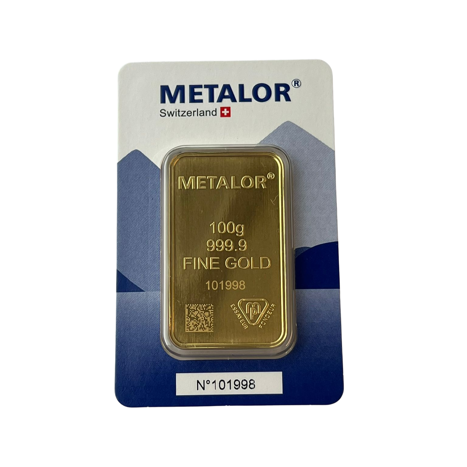Designed by the reputable Swiss bullion brand Metalor, all of our 100 gram Metalor gold bars carry LBMA approval. Each of our 100g gold bars is stamped with a unique serial number, enabling you to trace its purity.