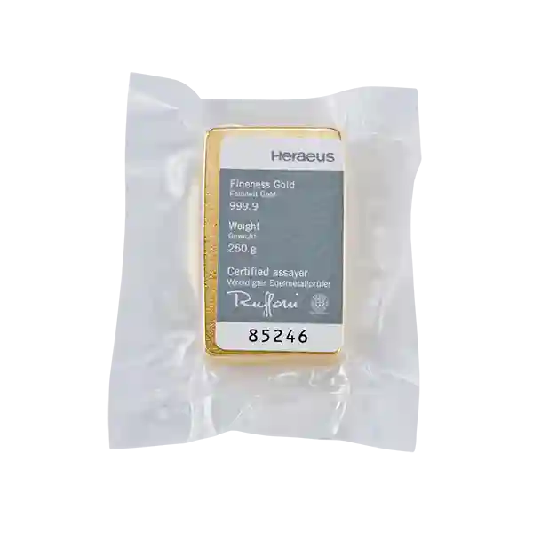 Our German-made 250 gram Heraeus gold bars boast 24 Carats, 99.99% purity, and are LBMA approved, making them a great option for first-time investors and collectors.