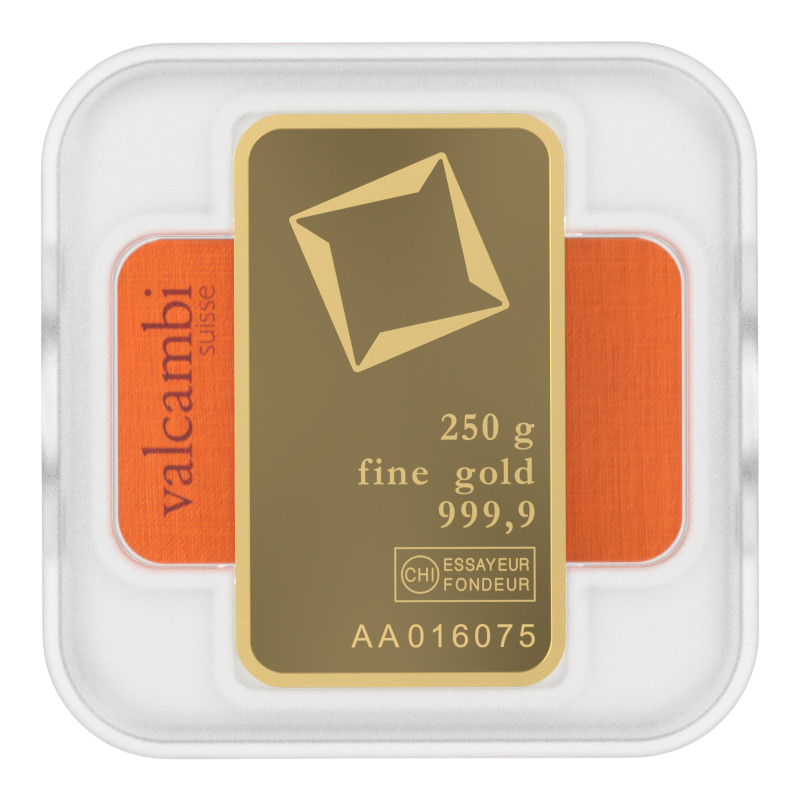 Our Swiss-made 250 gram Valcambi gold bars boast 24 Carats, 99.99% purity, and are LBMA approved, making them a great option for first-time investors and collectors.