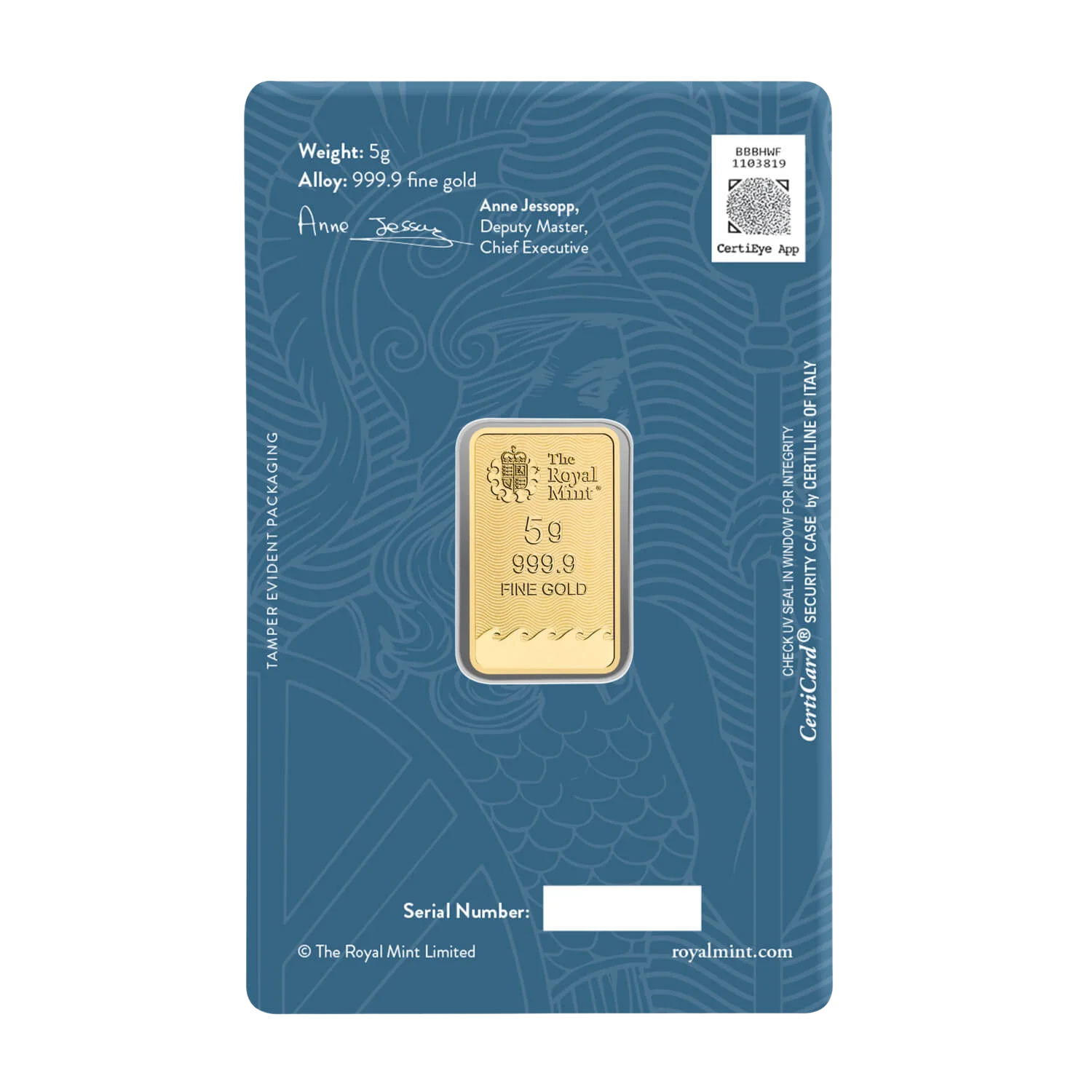 All of our 5 gram Royal Mint gold bars carry LBMA approval. Each of our 5g gold bars is stamped with a unique serial number, enabling you to trace its purity.